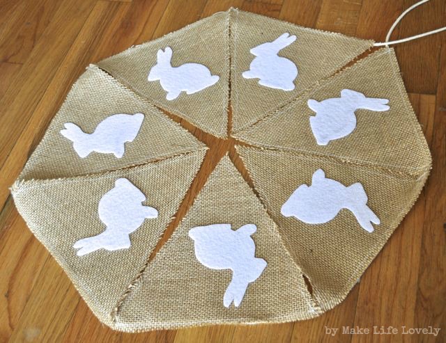 Burlap is ridiculously cheap (especially if you have a coupon), as is the white felt I used for the rabbits.
