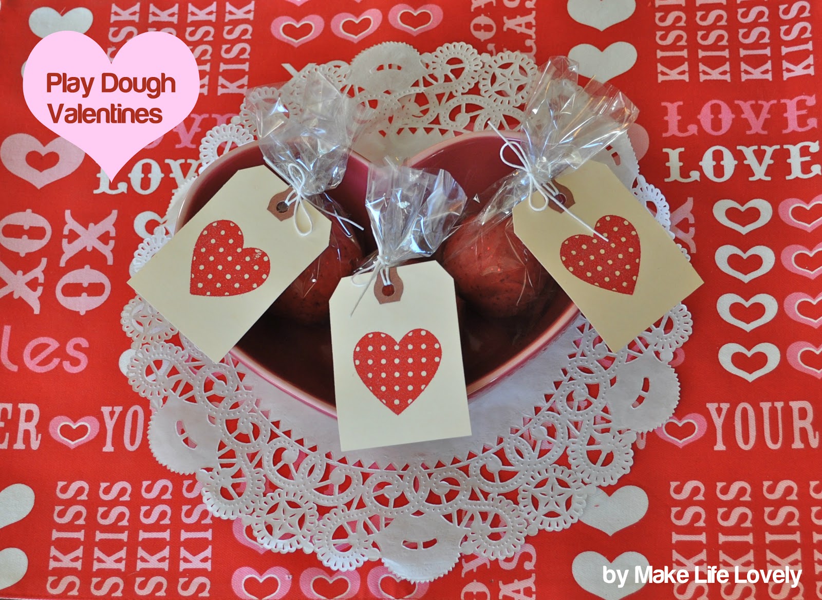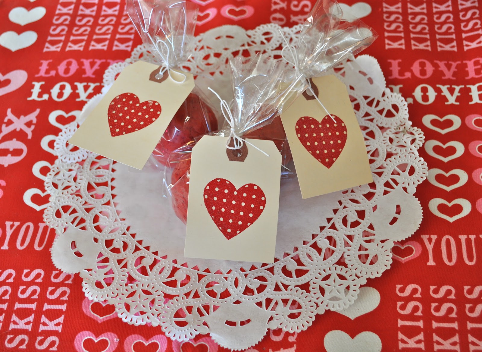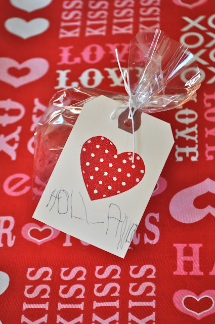 We also made some cute heart tags to go with the bags of dough that I’ll show you how to make.