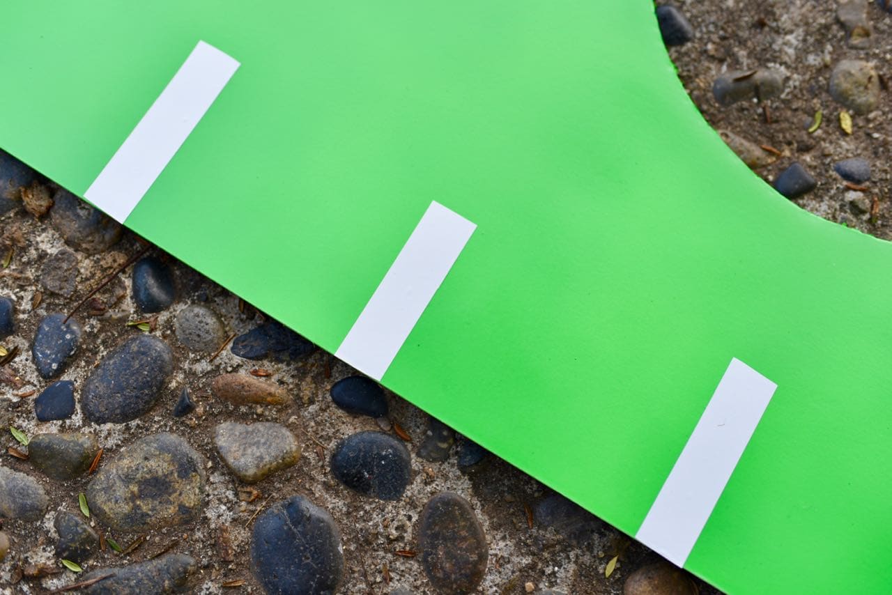 Step 2. Remove the cut circle portions. Spray paint the entire front of the foam board green. Use multiple thin coats of spray paint to cover the surface evenly. Let dry completely.