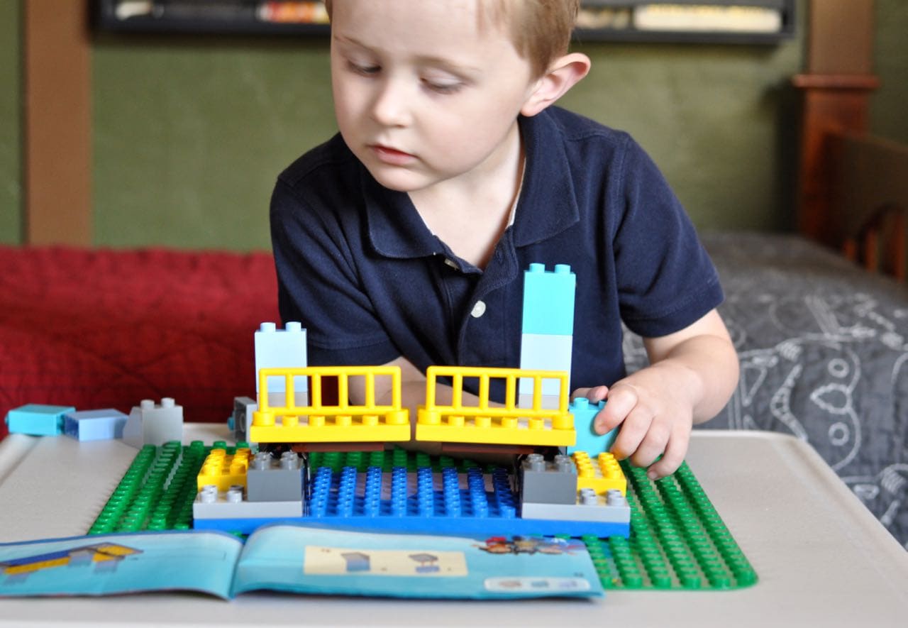 My son’s Super Heroes Lego Duplo set came with directions that he was able to follow, and it was amazing to watch!