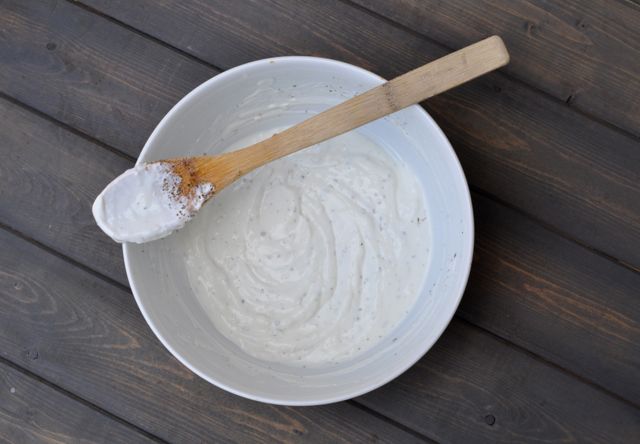 Combine the Greek yogurt, garlic, lemon, salt, and pepper in a medium bowl.
