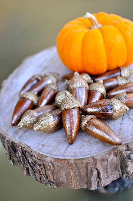 The metallic bronze and gold paint gave them just the sparkle they needed, while still maintaining the beautiful, rich browns of the acorn itself.