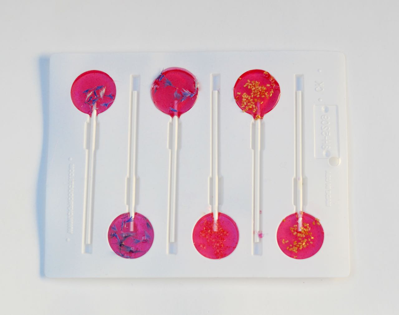 Now let the suckers sit on the countertop until they are hard. Gently twist the mold just a little bit to release the suckers.