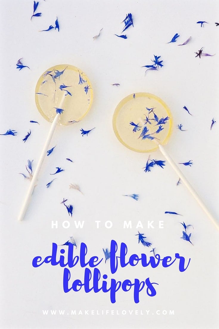 A big thanks to Baker’s Party Shop and Floating Petals Confetti who sent me some of the supplies I used to make these sweet treats. If you plan on trying to make edible flower lollipops, I highly recommend these shops!
