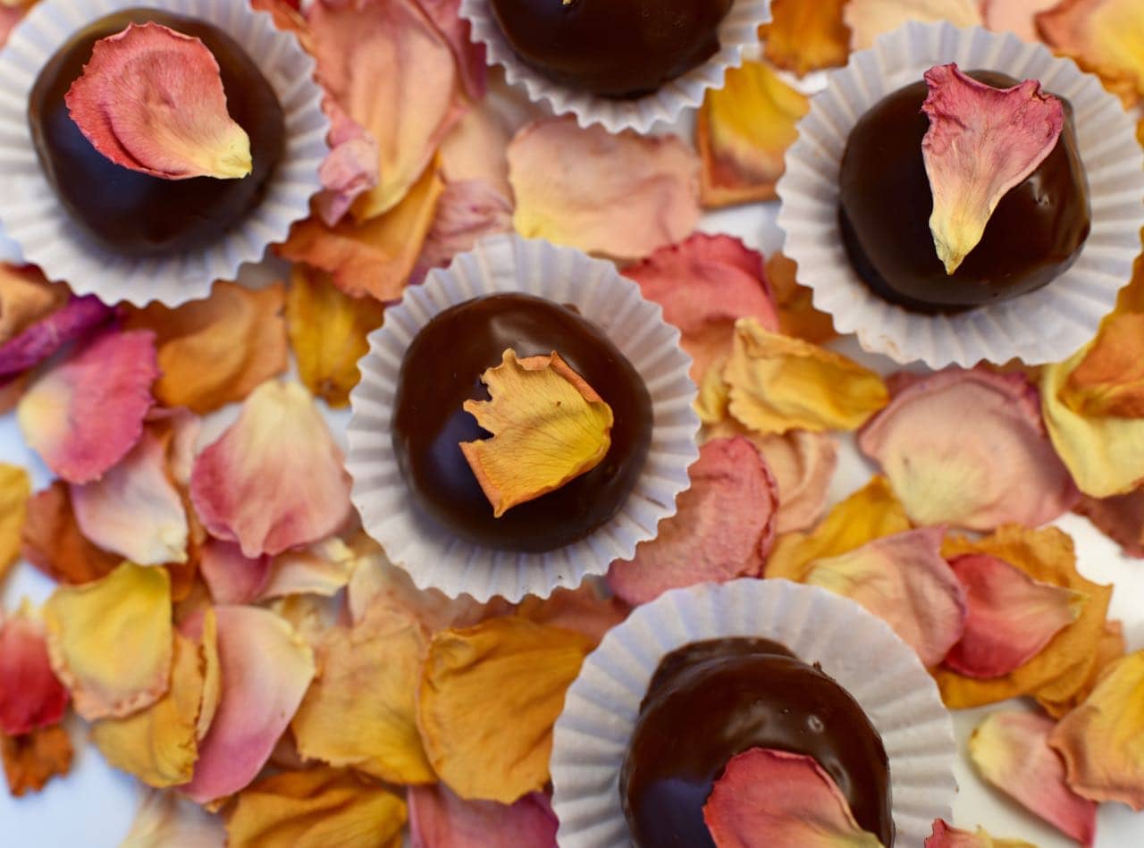 So here’s where I got creative. After I dipped each ball in chocolate, I added a real organic edible flower to the top of each OREO cookie ball. Floating Petals Confetti has lovely colorful edible flowers you can choose from, and they sent me some of my favorites to make these sweet treats!