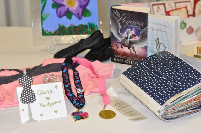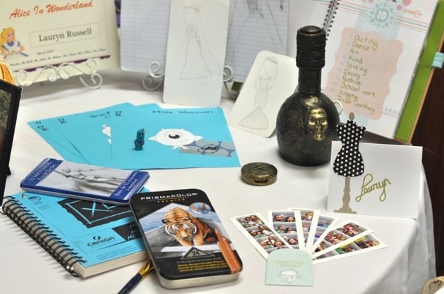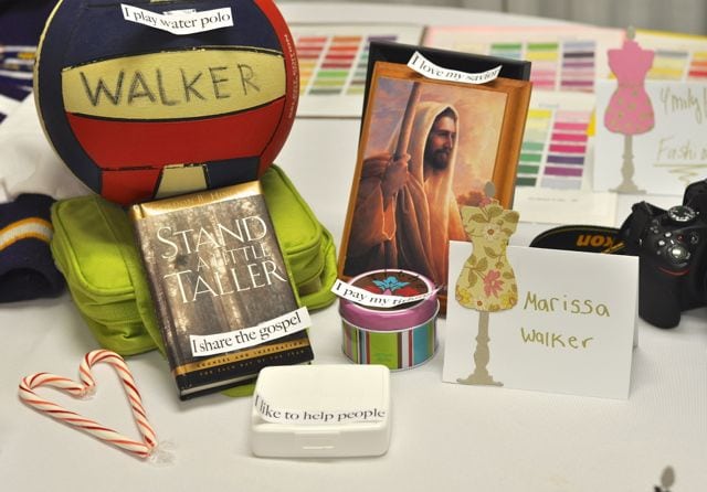 We had round tables set up for each girl to display some things that represent them, and show what their talents are and what they’ve been working on this year. I used my Tim Holtz dress form die to die cut cute dress forms in different colors and patterns, then let the girls pick one and write their name on it to show which table was theirs. So easy, and I love the way they turned out!