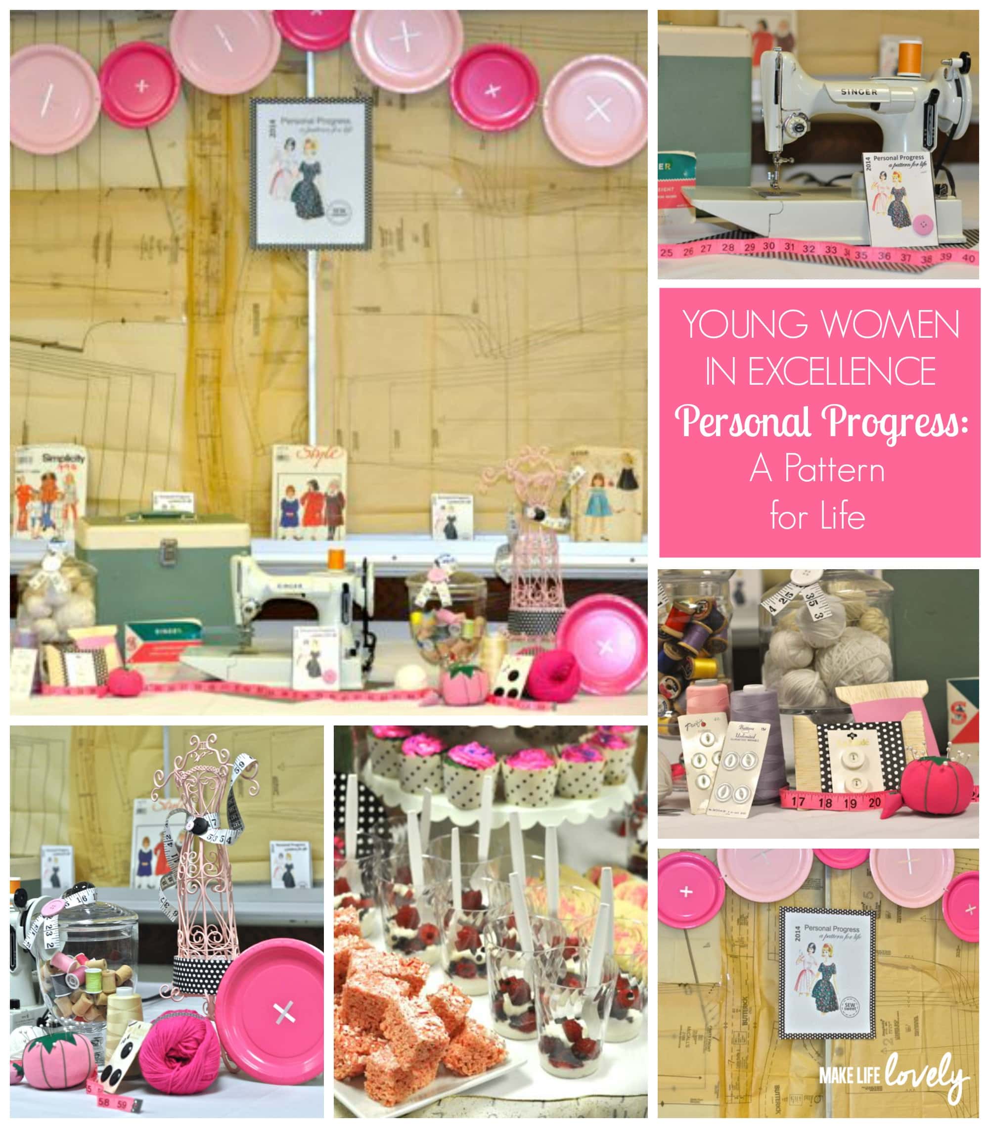 In early December I had the privilege of putting together a program for the 12-18 year-old girls at my church, called Young Women in Excellence. It’s a wonderful night where we showcase the girls and all of the amazing talents they have and things they have done that year. I decided to go with a sewing/pattern theme, which was a lot of fun to work with!